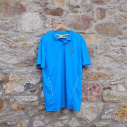 Lyle & Scott blå pikétröja Herr S merinoull/ bomull
