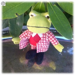 Välekiperad groda i rutig kostym slips fint skick