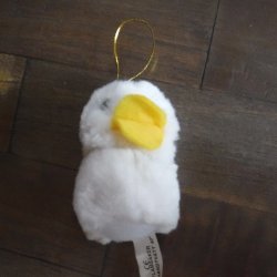 Vit anka med gul näbb och hänge