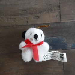Liten panda med svarta öron, rosett och hänge