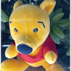 Stor underbar Nalle Puh större sittande med sin röda väst omärkt Fint skick