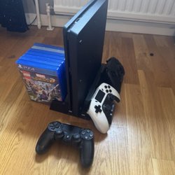 Playstation 4 med spel och handkontroller