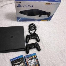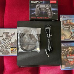 • PS4 Slim är en mindre och lättare version av den ursprungliga PS4 konsolen. Den har samma prestanda som den ursprungliga modellen men tar upp mindre plats.