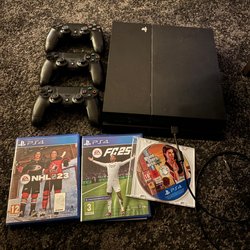 Playstation 4 med spel och 3 st handkontroller