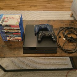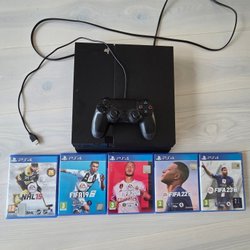 Playstation 4 med spel och handkontroller