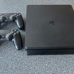 Playstation 4 Slim med spel och handkontroller