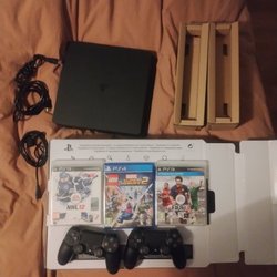PlayStation 4 slim med 2 handkontroller och spel