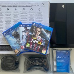 Playstation 4 med spel och handkontroller