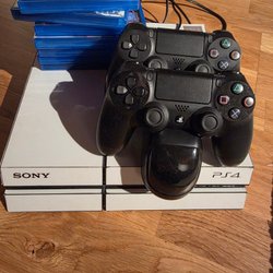 Playstation 4 med spel och handkontroller