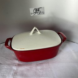 Röd ugnsform med vitt lock