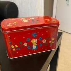 Gullig kakburk - Retro röd plåtask