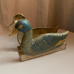Servettställ/brevhållare i form av gräsand, metall i mässing-färg