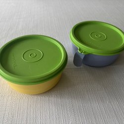 Tupperware - 2 skålar med lock. Handtag att hålla i. Fint skick