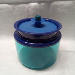 Tupperware burk i blått med grått lock.