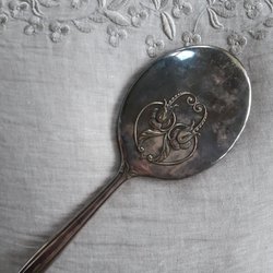 Gammal Handspegel Svensk 1930-tal Tenn Årtalsstämplad Graverad Monogram Vintage