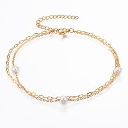 Handgjord 2 Radig Vristlänk i Guldpläterad 304 stål med pärlor
