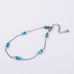 Handgjord Vristlänk i AISI 304 stål . med Turkos stenar