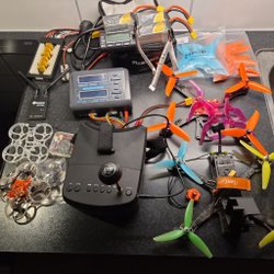 FPV glasögon, laddare, 2 st drönare och diverse andra FPV prylar