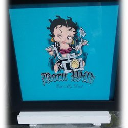 Underbar Betty Boop tavla med texten Born Wild Eat my Dust Fint skick