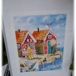 Marie Guldbrand skärgårdsmotiv konst tryck inramad inglasad Fint skick