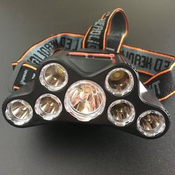Superstark Pannlampa 7 LED uppladdningsbar huvudlampa