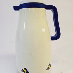 Vit Termoskanna med Blå Detaljer – Klassisk och Funktionell