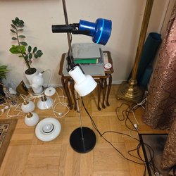 Varierande sortiment av antika golvlampor