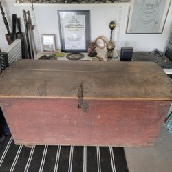 - Mörkt träade sjömanskistor med slitna kanter
