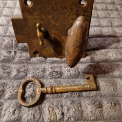 - Antikt lås med dekorativ nyckel