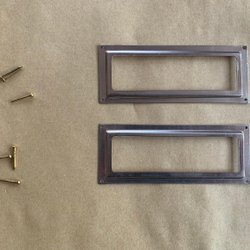 2 st nyckelskyltar till dörr, förnicklad, beslag TEKA byggnadsvård 60-tal