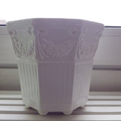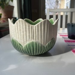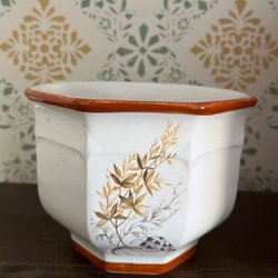 • Keramisk blomkruka med handmålade blommor