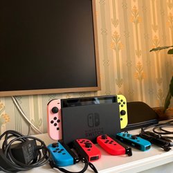 Nintendo Switch OLED Neon + Joy-Con & tillbehör – Försäkrad & Klar att Spela
