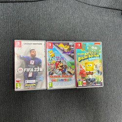 Nintendo Switch Spel: FIFA 23, Paper Mario, Spongebob