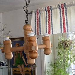 - Träbaserade taklampor som ger ett varmt och naturligt intryck