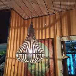 - Träbaserade taklampor som ger ett varmt och naturligt intryck
