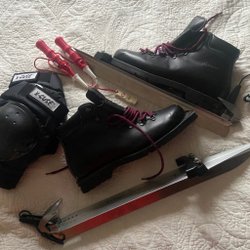 Skridskor med läderremmar