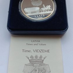 Latvia. 1 Lats Vidzeme 2004. Silvermynt Proof i org. ask. med certifikat. Ut 1:-