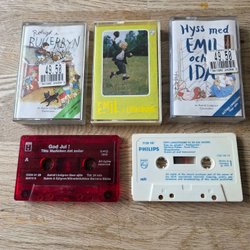 I en tid då teknologin ständigt rusar framåt, är det något speciellt med att stanna upp och blicka tillbaka. Många av oss minns den oslagbara känslan av att sätta in en kassett i spelaren, trycka på play och föras till en annan värld. Kassettband för barn har varit porten till en magisk värld av sagor, äventyr och musik. De representerar en enklare tid då berättelser och sånger kom till liv i våra fantasier, snarare än på en skärm framför oss. Här på Tradera finns en skattkista fylld med underbara minnen och upptäckter. Här kan man finna allt ifrån de mest älskade sagorna som trollbundit generationer, till musikklassiker som fått små fötter att trippa i takt. Exempel på vad som kan dyka upp är: