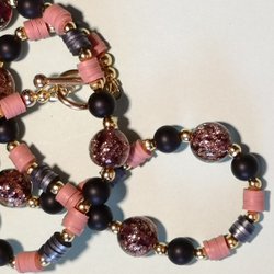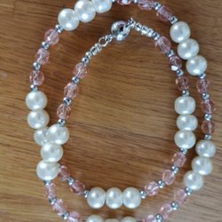 PRIS SÄNKT ! Ett halsband i pärlvita pärlor och fasett slipade rosa glas pärlor