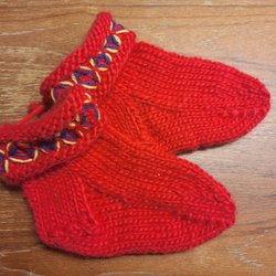 Handstickade tossor/tofflor till baby, storlek 12-15 månader. ull, grått, rött