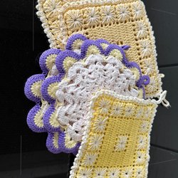 Virkade dukar med blommönster