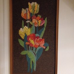 Broderad tavla med tulpaner