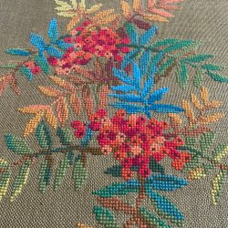En handbroderad äldre tavla ”Rönnen”