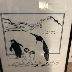 Broderade tavlor med svarta ramar