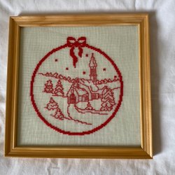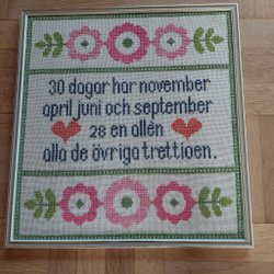 Broderad tavla i korsstygn.