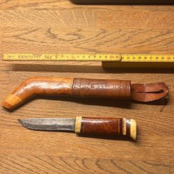 Samekniv,hantverk,horn/trä/ läder.Knivblad Brusletto,Norge.