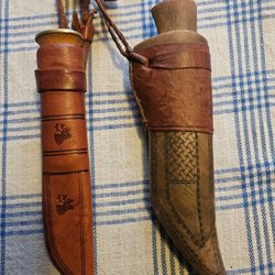 Finsk hantverkskniv / samekniv med läderslida.