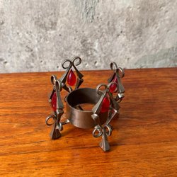 Ljuslykta / Hållare / Smidesljusstake | Metall Lykta med Röda Glashänge