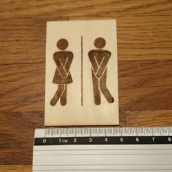 Toalettskylt i trä