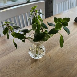 2. Sticklingar har svårare att växa sig till en ståtlig planta om du sätter dem i vatten. Vi rekommenderar att du planterar sticklingen direkt i luftig planteringsjord som blandats med lite fint grus. För att en stickling ska kunna utvecklas behöver rötterna vatten, syre och näring – vilket finns i planteringsjord.